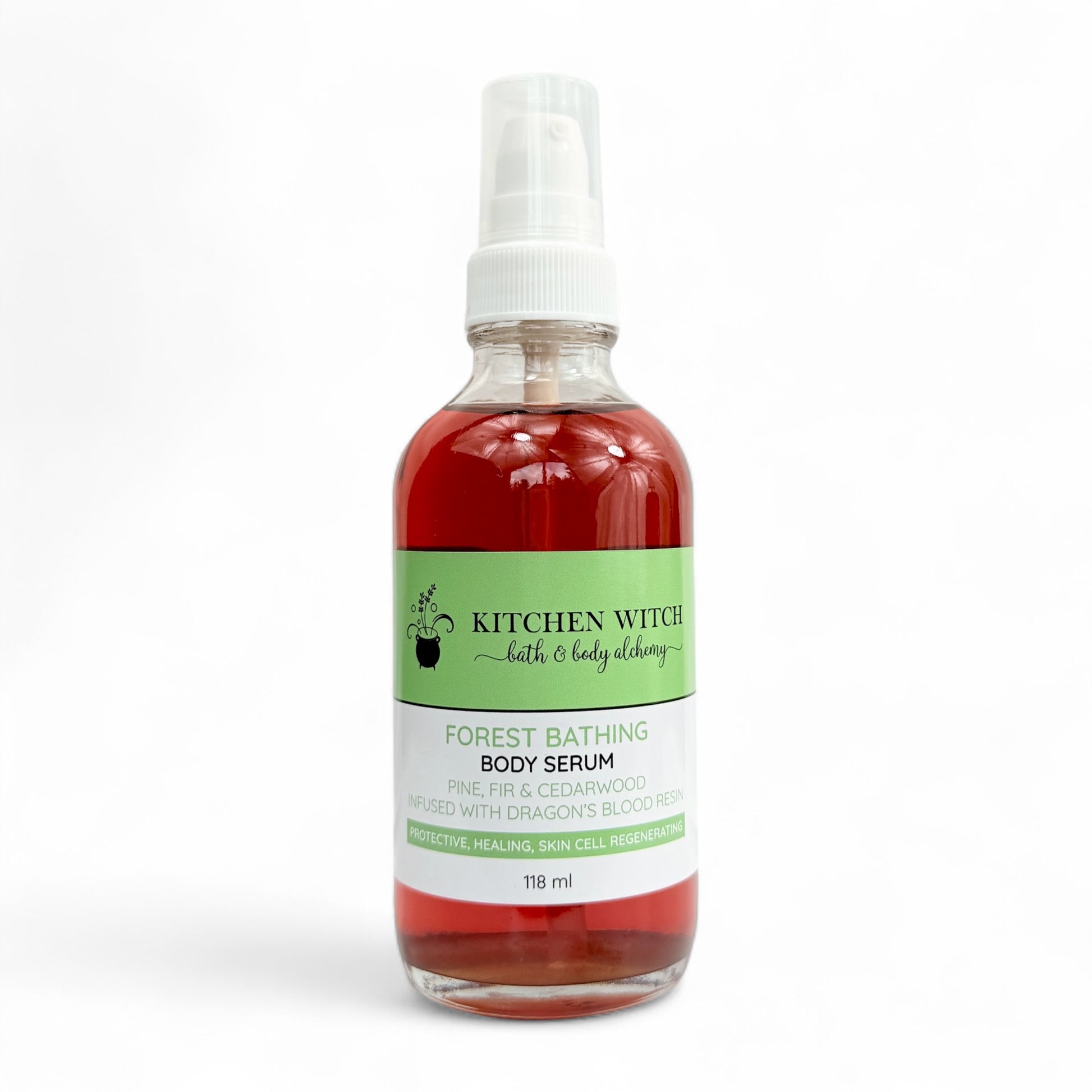 Renew and refresh your senses and skin with FOREST BATHING Body Serum. Natural essential oils of Fir, Pine, and Spruce will transport you deep into a fresh dewy evergreen forest.