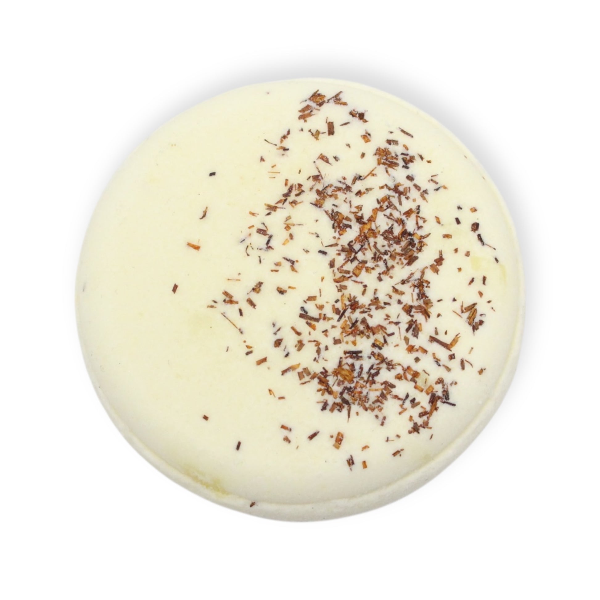 This bath bomb is rich and creamy with subtle sweetness of pure organic Bourbon Vanilla, warm Rosewood, and smoky Tobacco. Conjuring the cozy feeling of pulling on your very favorite sweater.