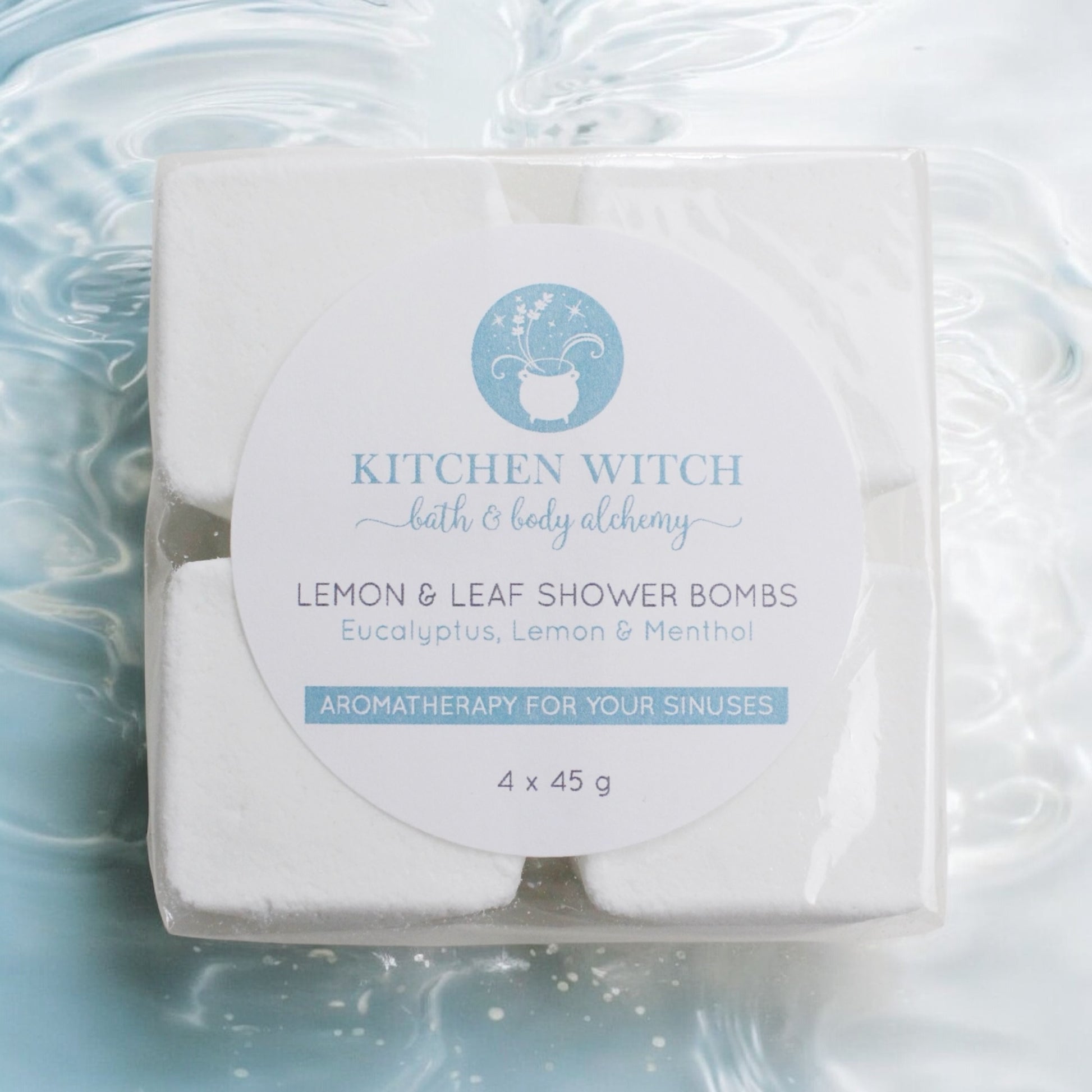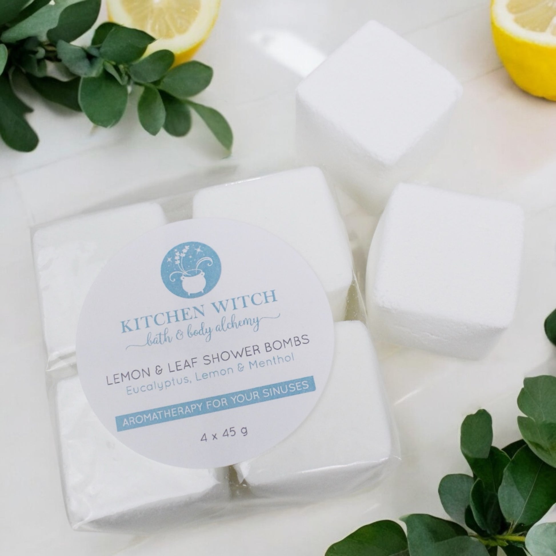 Re-introducing the Kitchen Witch Shower Bombs (previously “shower steamers”). These adorable little cubes are packed with cooling menthol which is carried by the steam of the hot shower, creating a fresh, invigorating sensation for your sinuses.